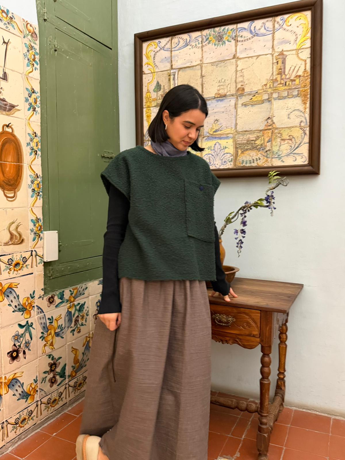 Les tissus proviennent d'une commune de la province de Valencia, Carcaixent, le village de ma grand-mère, de mon enfance et celui où ma mère réside. Lors de mes visites, nous partageons ces recherches de matière. La marque s'oriente dès que possible vers des tissus naturels et non synthétiques.