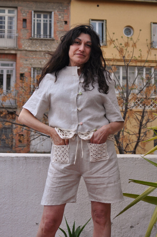 Toutes nos pièces sont fabriquées à la main en France en utilisant des techniques traditionnelles : le croquis, la prise de mesure, le patronage, la coupe et la couture.